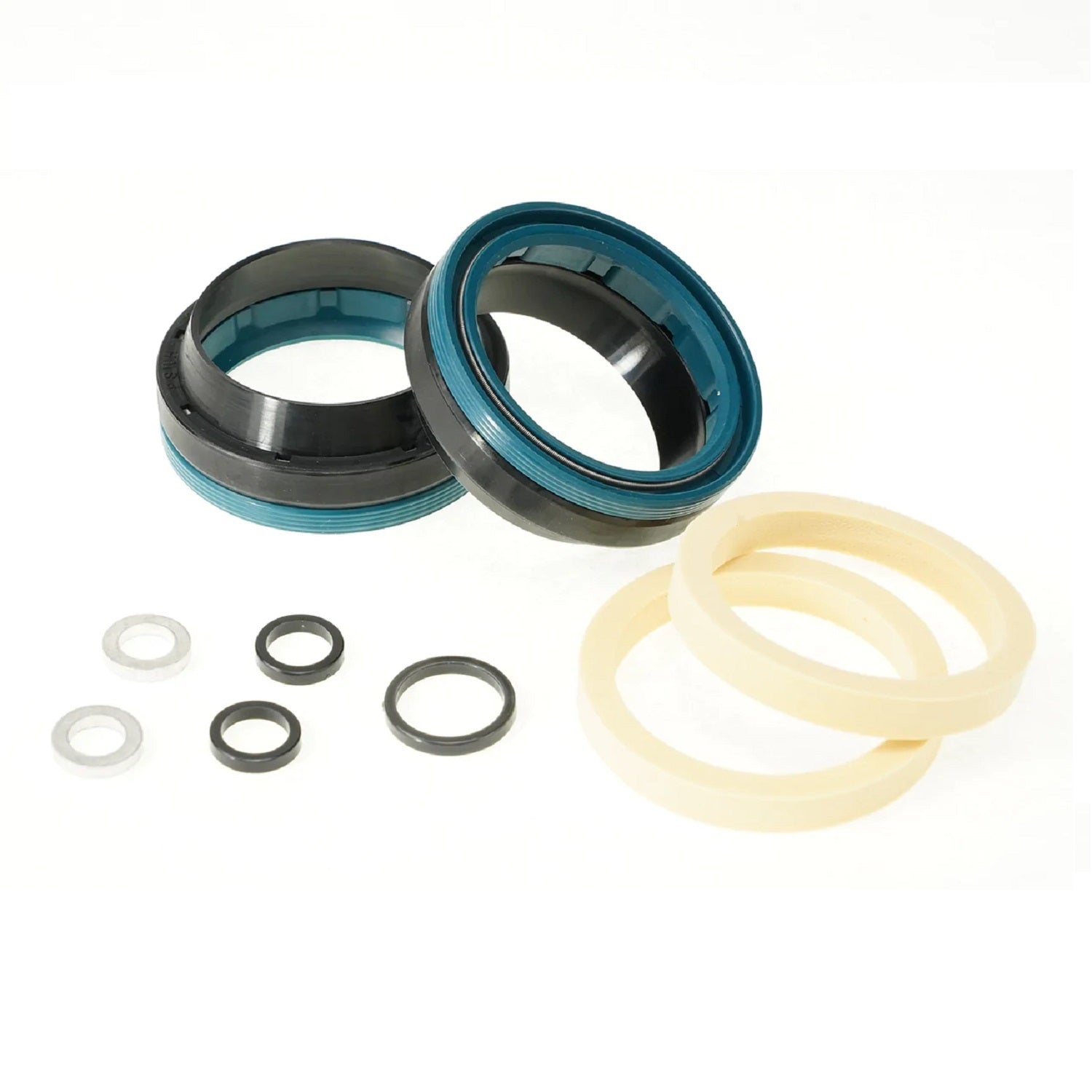 This seal kit includes HyGlide integrated upper wiper/lower oil seal, foam rings and crush washers for Fox 36mm suspension forks.